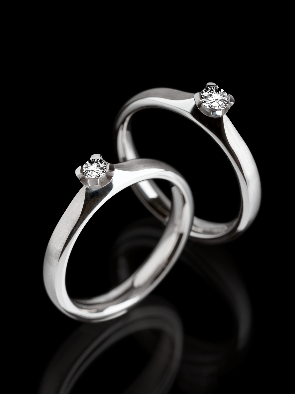 Zeitlose Eleganz und edle Schlichtheit sind charakteristisch für die Brillantschmuck-Reihe aus unserer Manufaktur. Langweilig wirkt das zarte geometrische Design aber keinesfalls. Matte und glänzenden Oberflächen im Wechsel verleihen den Preziosen eine unaufdringlich Spannung, die von funkelnden Brillanten gekrönt wird.